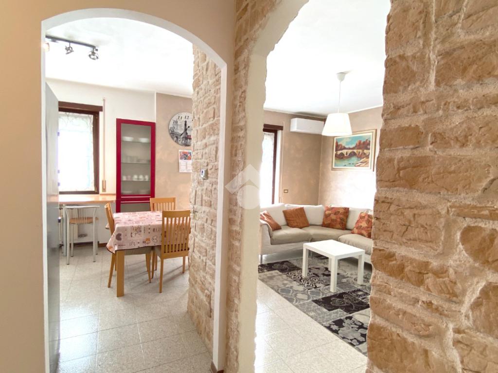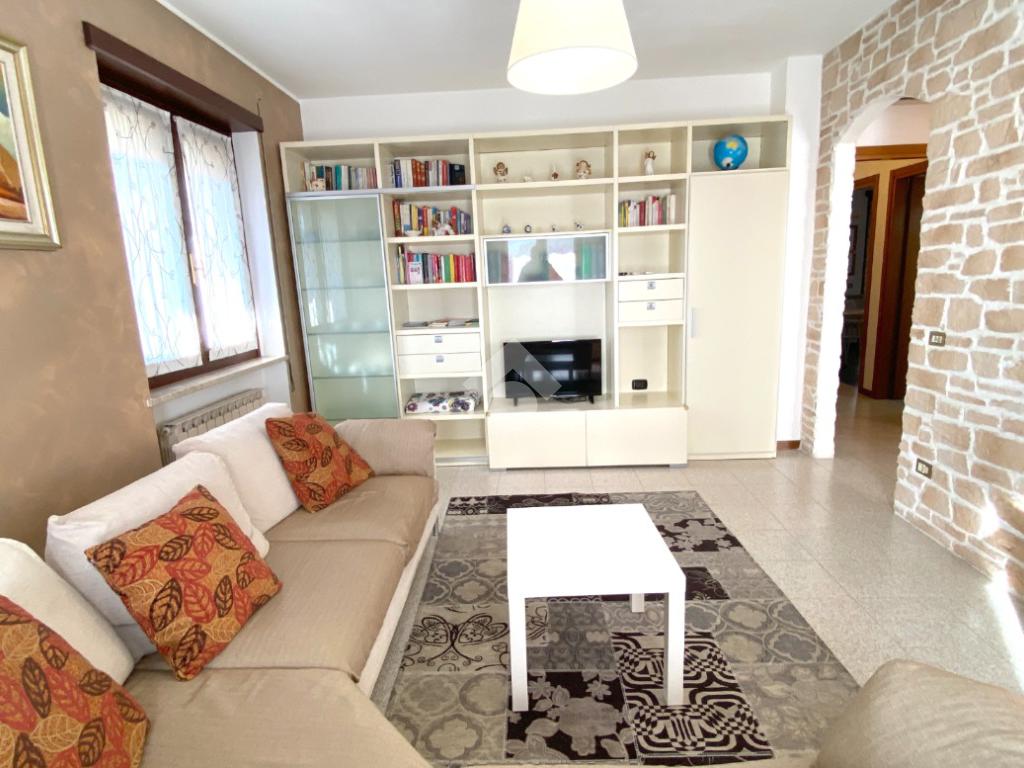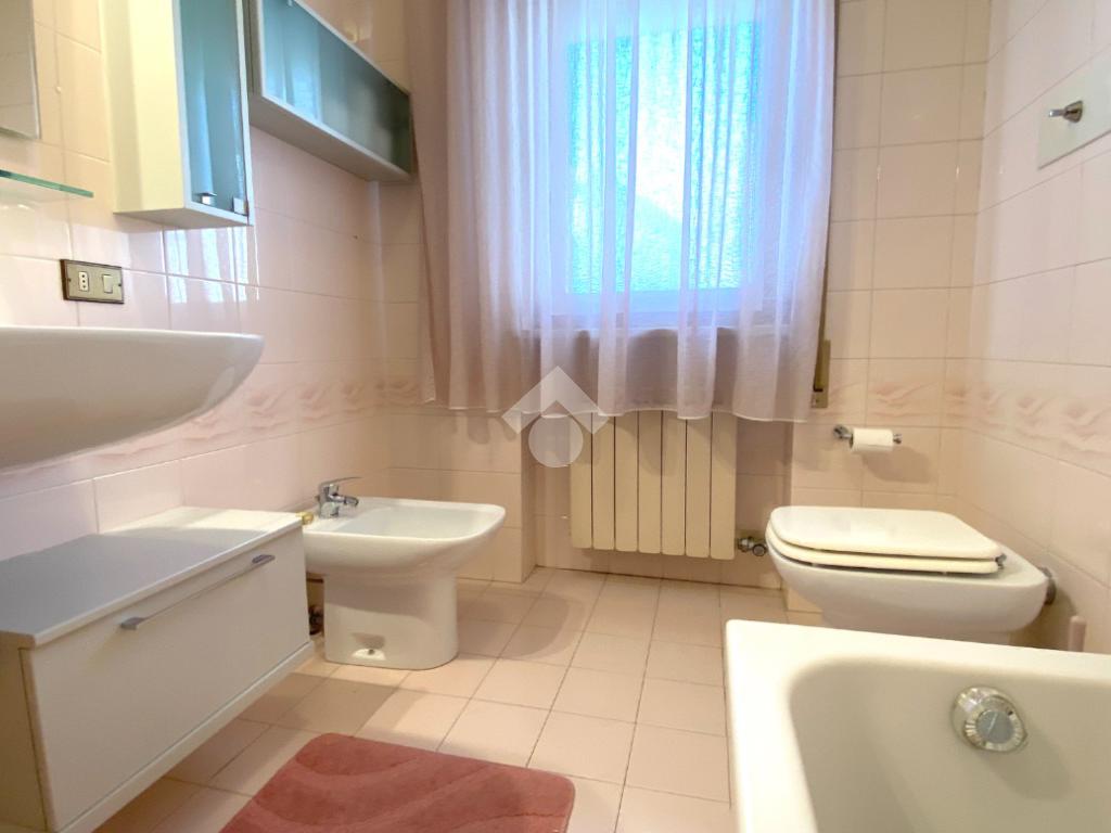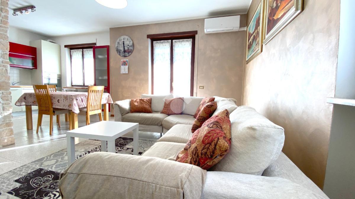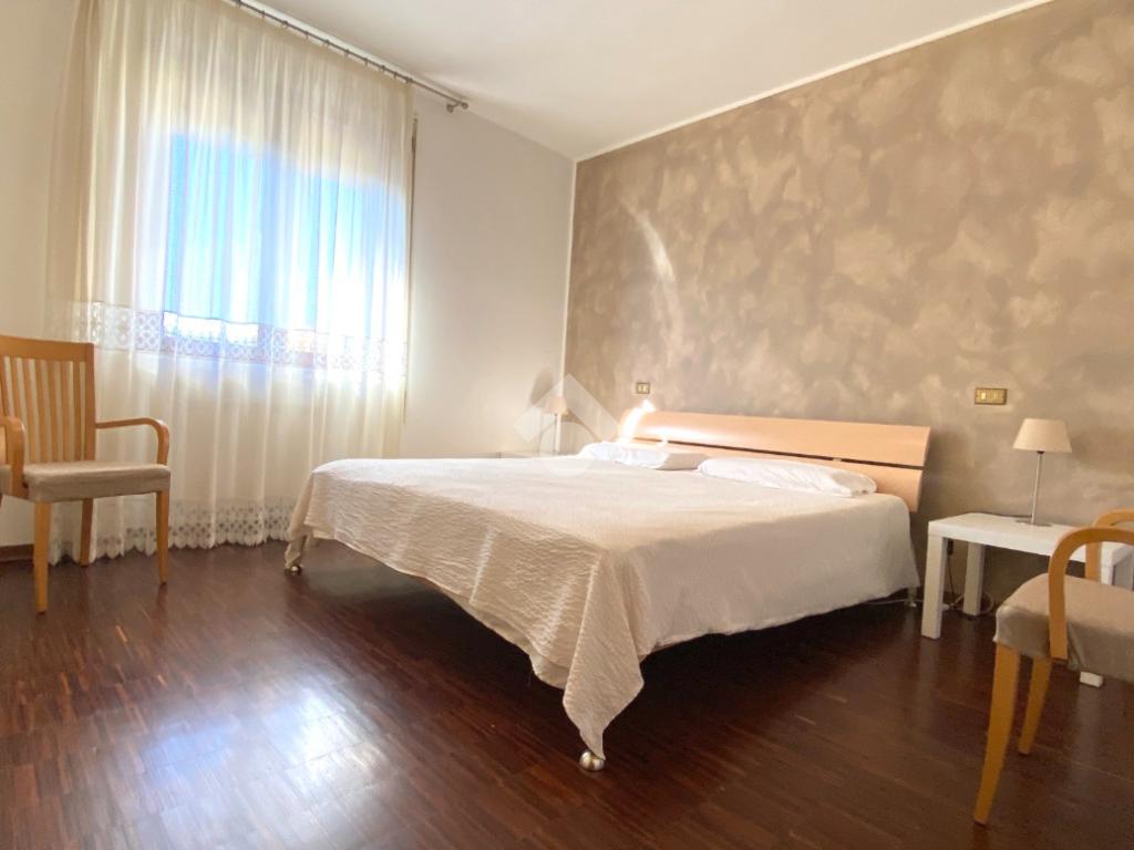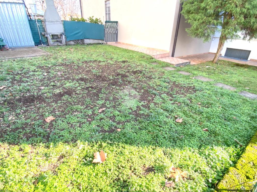 Thiene. In contesto Trifamiliare disponibile ampio TRICAMERE posto al piano primo e ultimo. L'immobile, recentemente ammodernato, dispone di ingresso su zona giorno servita da terrazzo, camera matrimoniale, camera doppia, camera singola e due bagni. Climatizzato e ceduto con l'arredo attualmente presente. Al piano interrato collegata da scala interna troviamo una taverna di 35mq con cucina, caminetto per griglia e pizza, climatizzatore caldo/freddo. Cantina spaziosa, ampia lavanderia con doccia e wc, doppio posto auto coperto ed uso esclusivo di un giardino esterno. Immobile libero e subito disponibile. Classe energetica 'C'.